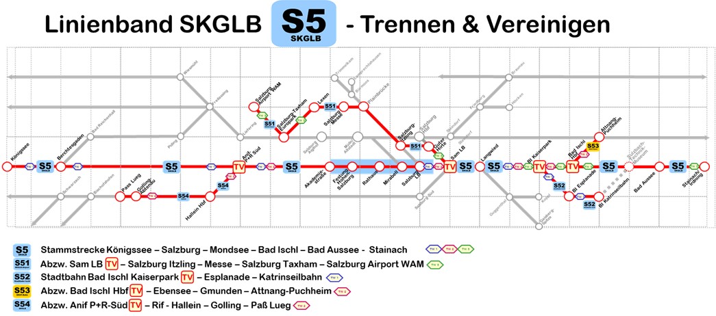 Linienverlaufsplan der neuen Ischlerbahn (SKGLB) - Linie S5 - schematischer Linienverlaufsplan