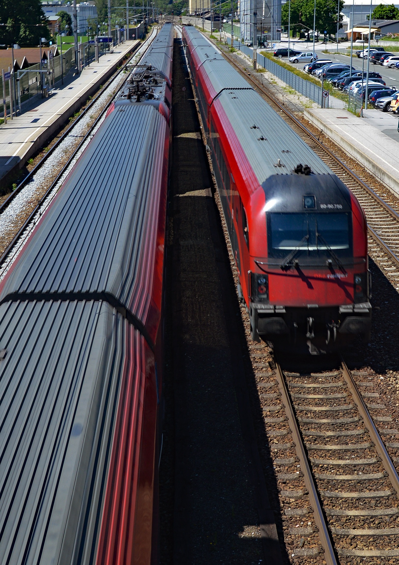 RailJet-Zugkreuzung Bahnhof Seekirchen