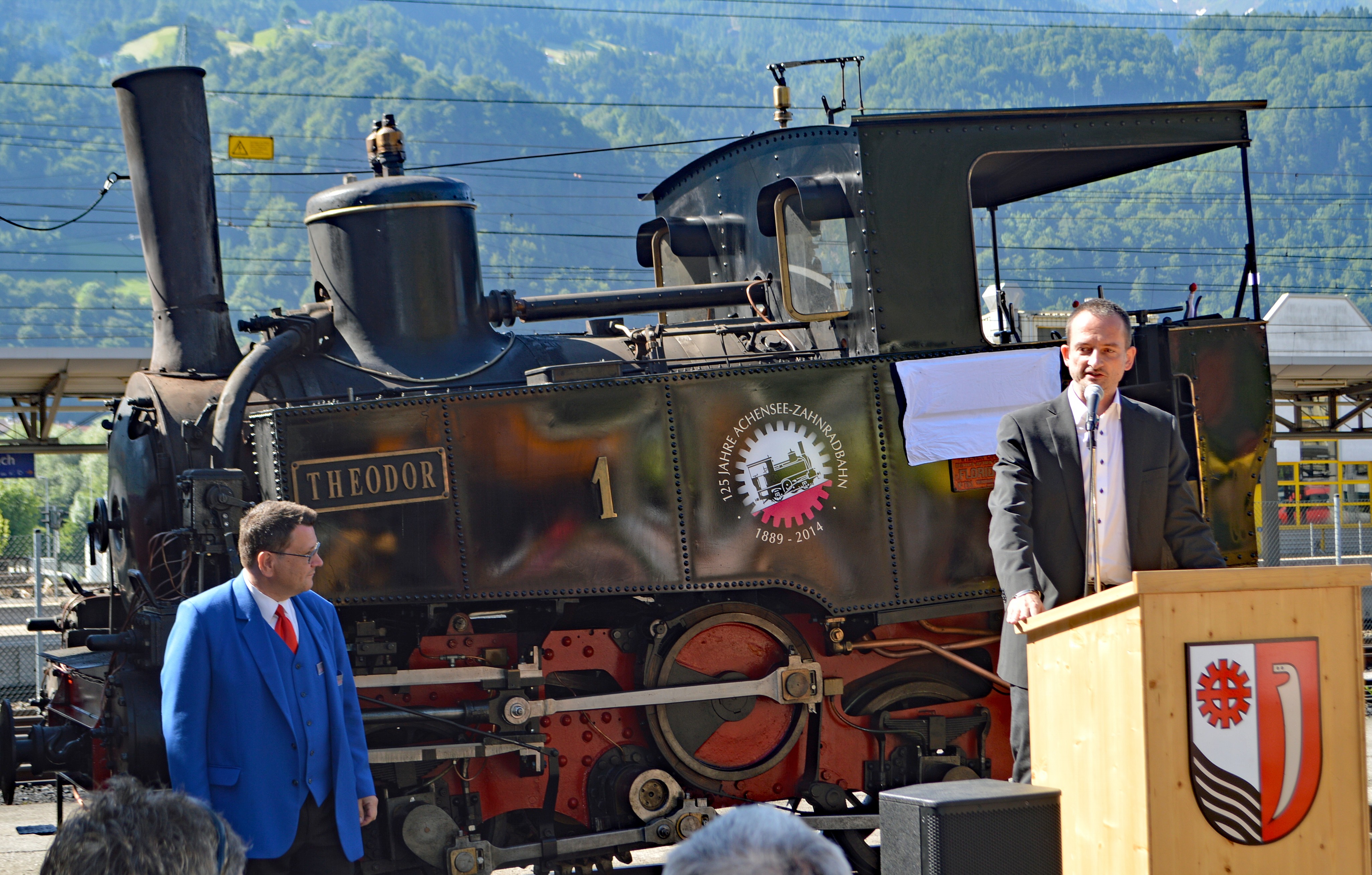 Landeshauptmann-Stv. Josef Geisler redet beim Jubiläum 125 Jahre Achenseebahn von der Elektrifizierung, denkt aber offensichtlich gar nicht daran. Gleichzeitig kann sich der Abgeordnete Hermann Weratschnig die Realisierung der Modernisierung mit Elektrifizierung und Verlängerung bis Pertisau innerhalb von 5 Jahren vorstellen.