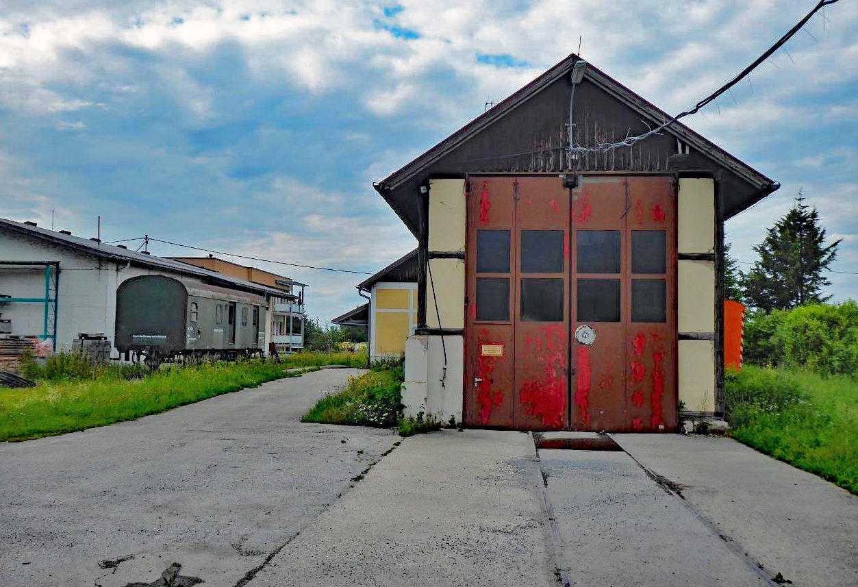 Bahnhof Haag am Hausruck, so elegant und in gutem Zustand sich der Lokschuppen befindet, so verwahrlost sieht das ehemalige Bahnhofsareal heute aus. Eine defekte Bushaltestelle und der dahin rostende Postwaggon sind der traurige Rest.