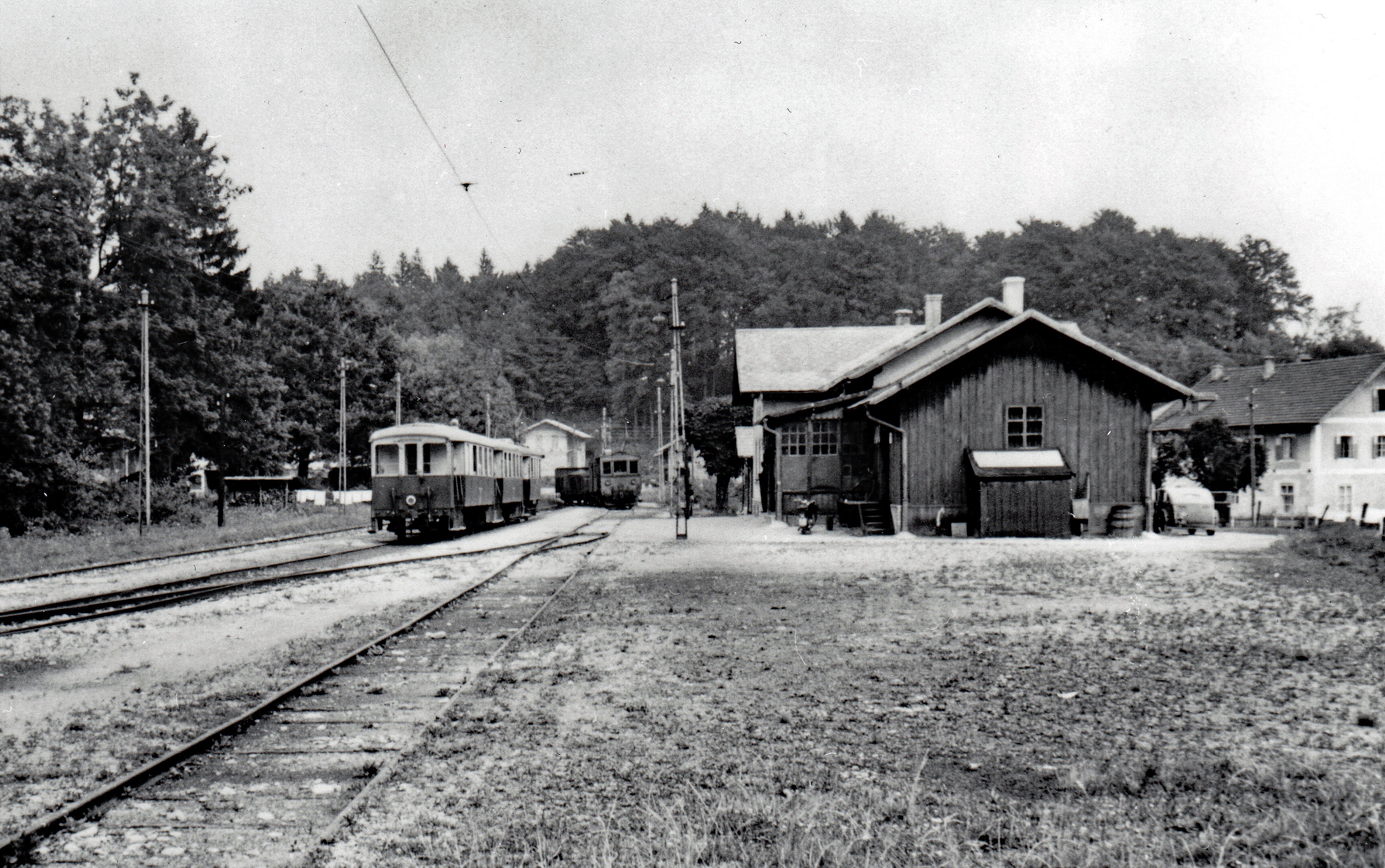 SETG Rote Elektrische Südlinien historische Fotos, Salzburger Lokalbahn durch die Stadt Richtung Königssee, Bahnhof St. Leonhard am Untersberg