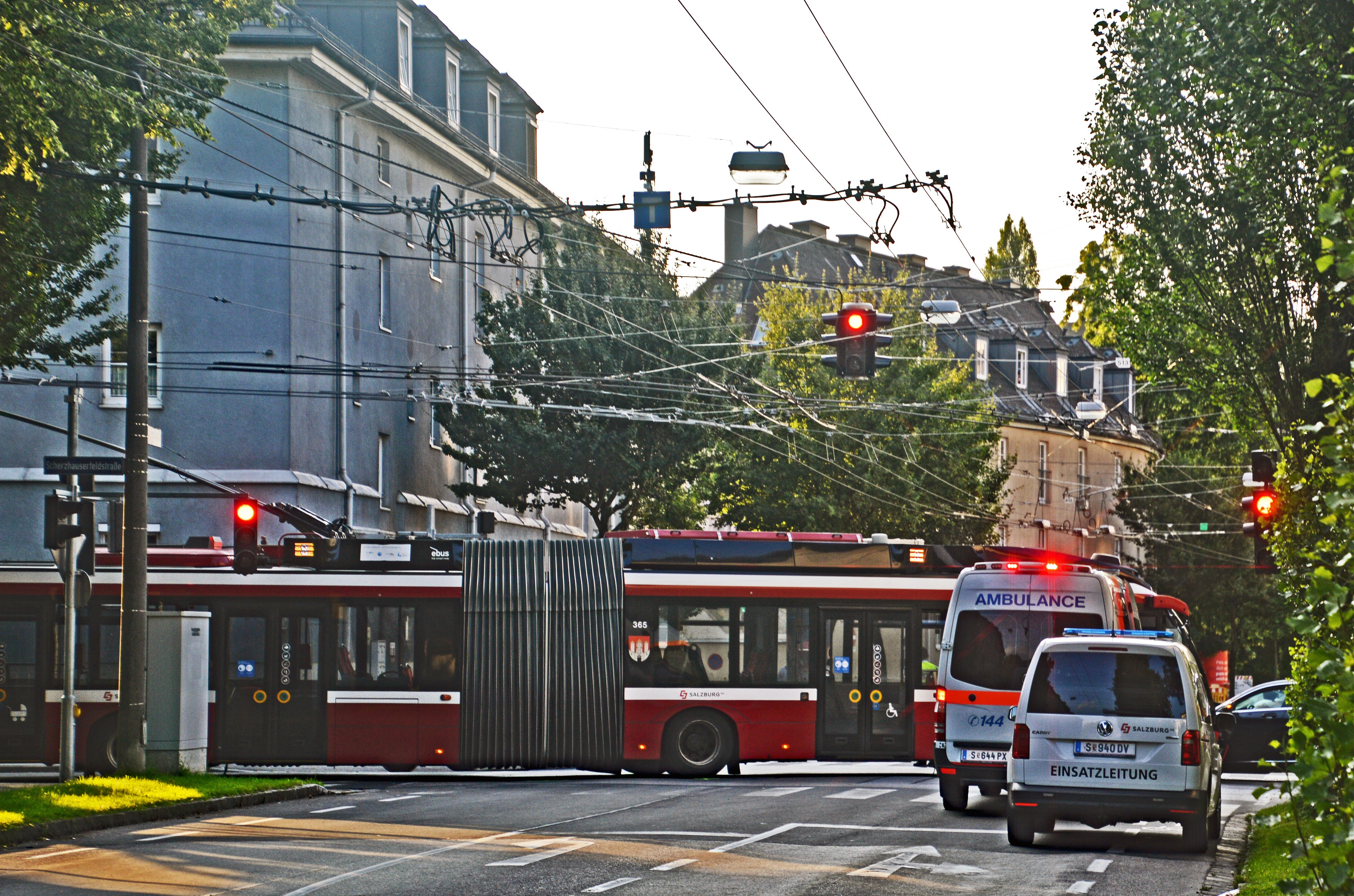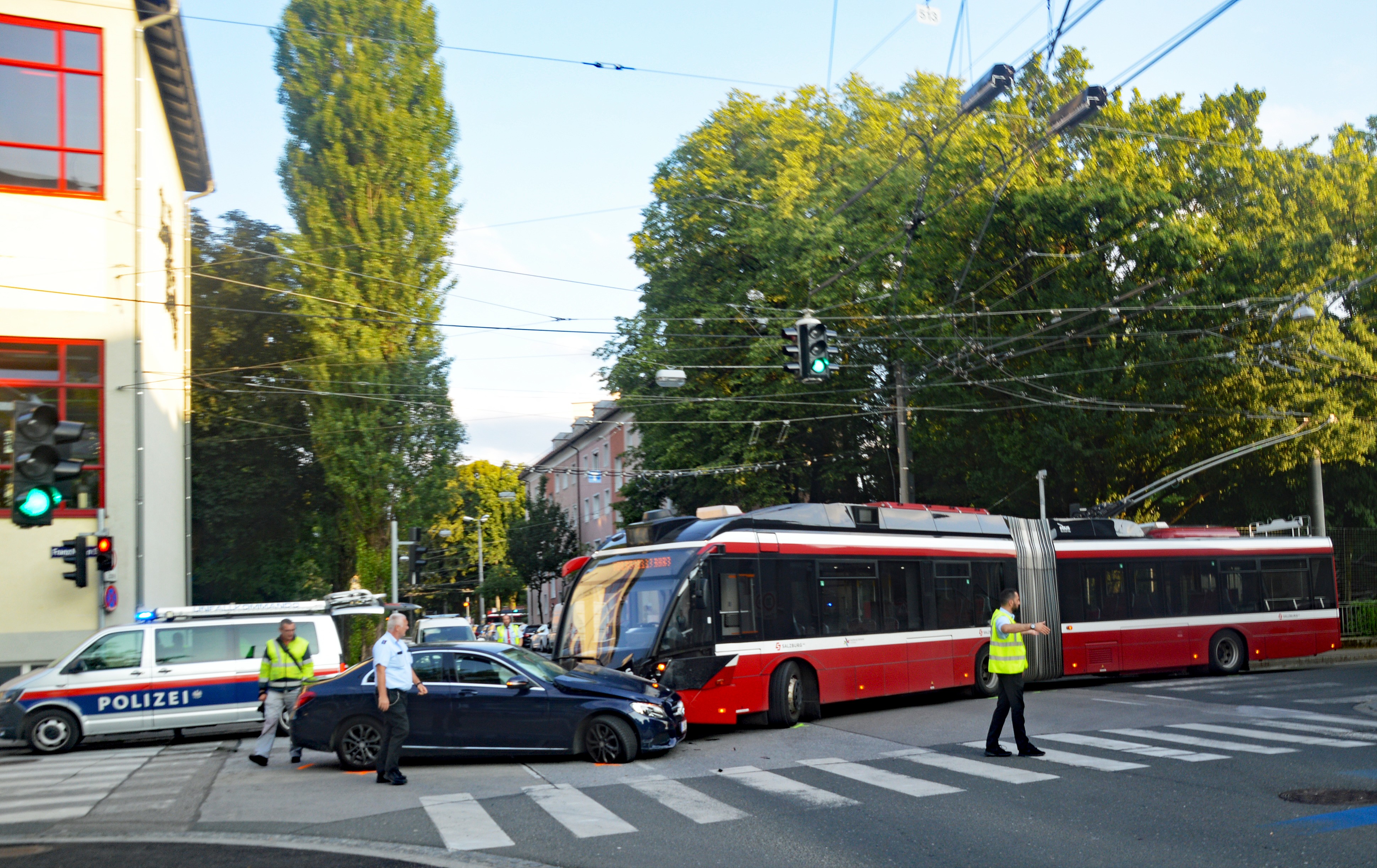Unfall zwischen Obus und Pkw in Salzburg-Lehen