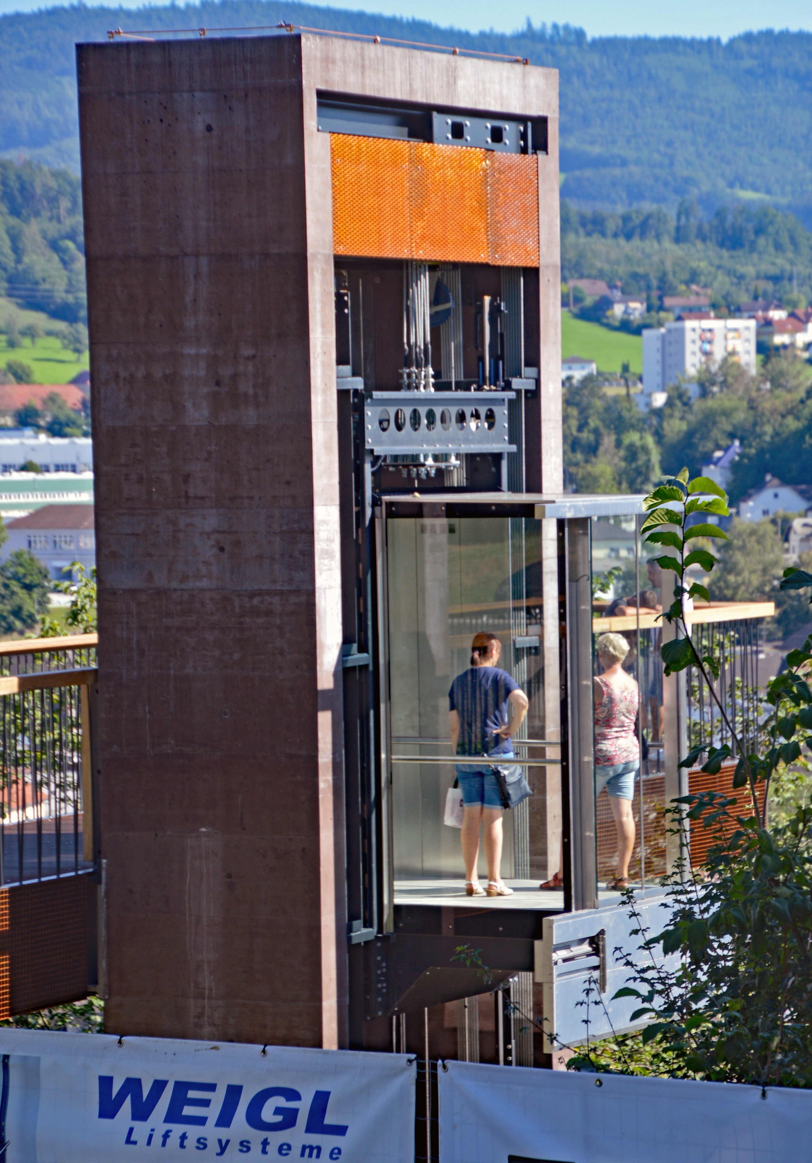 Der Hersteller des Liftes, die Firma Weigl aus Waizenkirchen, ist eigentlich durch den Bau von Behindertenliften bekannt. Zusammen mit dem Stahlbau-Unternehmen Hartl-Metall wurde ein exzellentes „Verkehrsmittel“, das Stadtteile verbindet, geschaffen. Obwohl die Konstruktion fast grazil erscheint muss sie der Witterung frei ausgesetzt stabil und möglichst störungsarm sein. Im Fall einer elektrischen Störung kann die Kabine übrigens mittels einer Handkurbel bewegt werden.