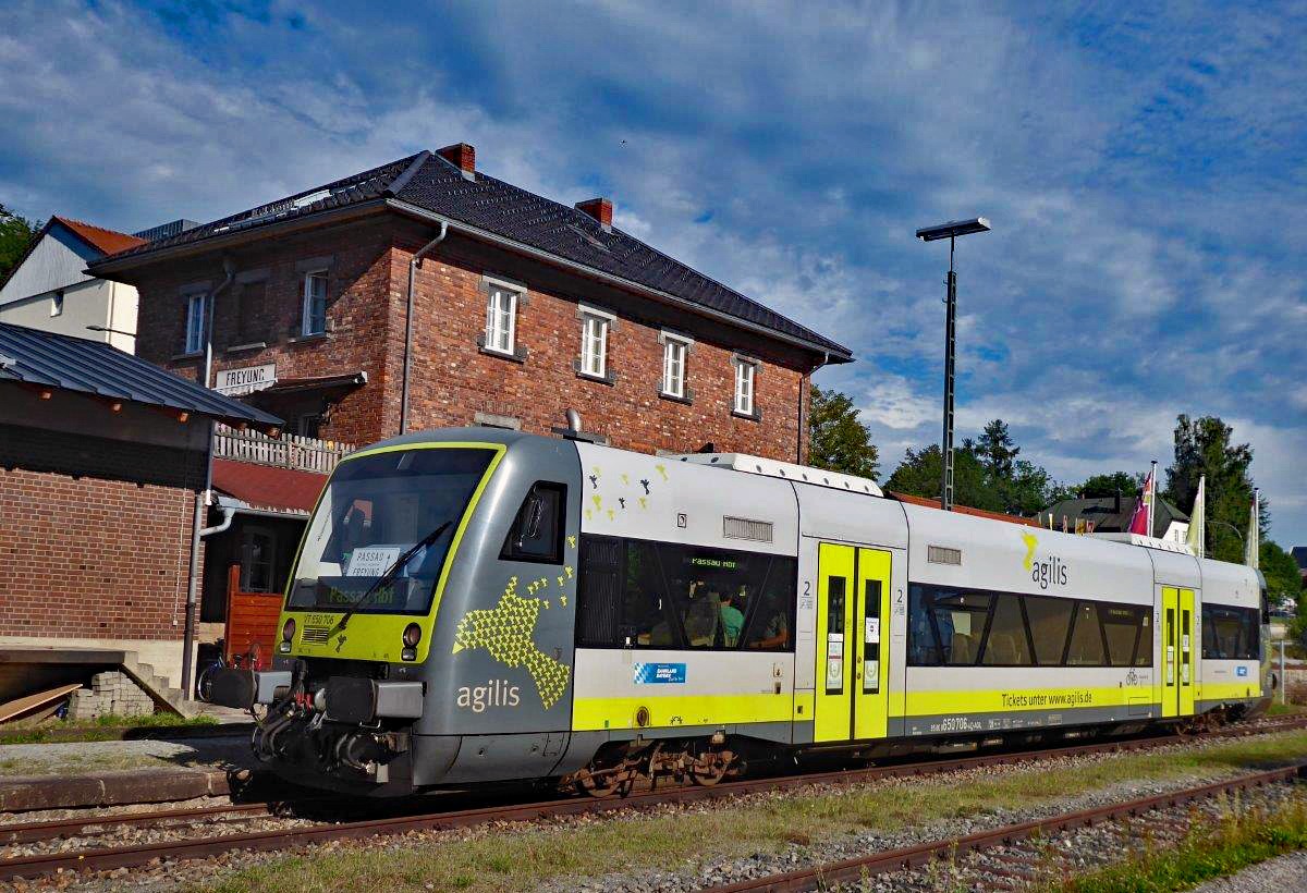 Passau - Freyung: Regio Shuttle von Agilis bedienen in der Regel die Züge der Ilztalbahn - hier der 650 706 im Endbahnhof Freyung am 22.8.2020.