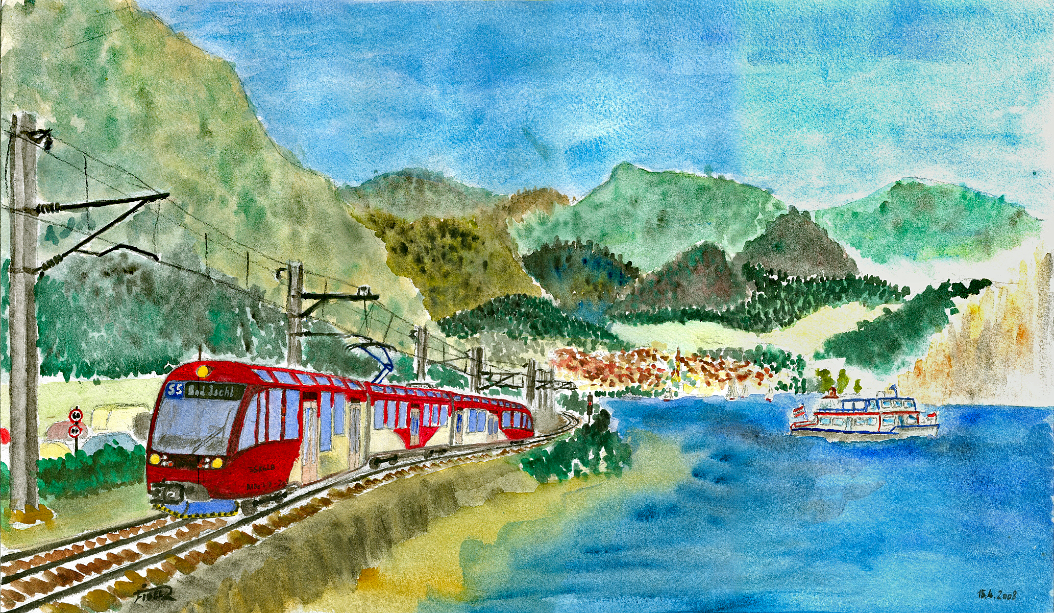 Die moderne S5 Neue Ischlerbahn inspirierte Martin Hauser zu dieser Visualisierung einer modernen Regionalstadtbahn am Ufer des Wolfgangsees.