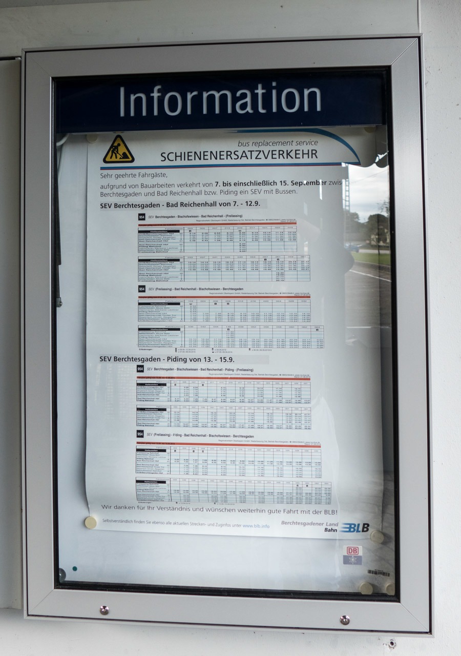 Fahrgastinformation am Haltepunkt Bayerisch Gmain bei Schienenersatzverkehr - weite Wege.
