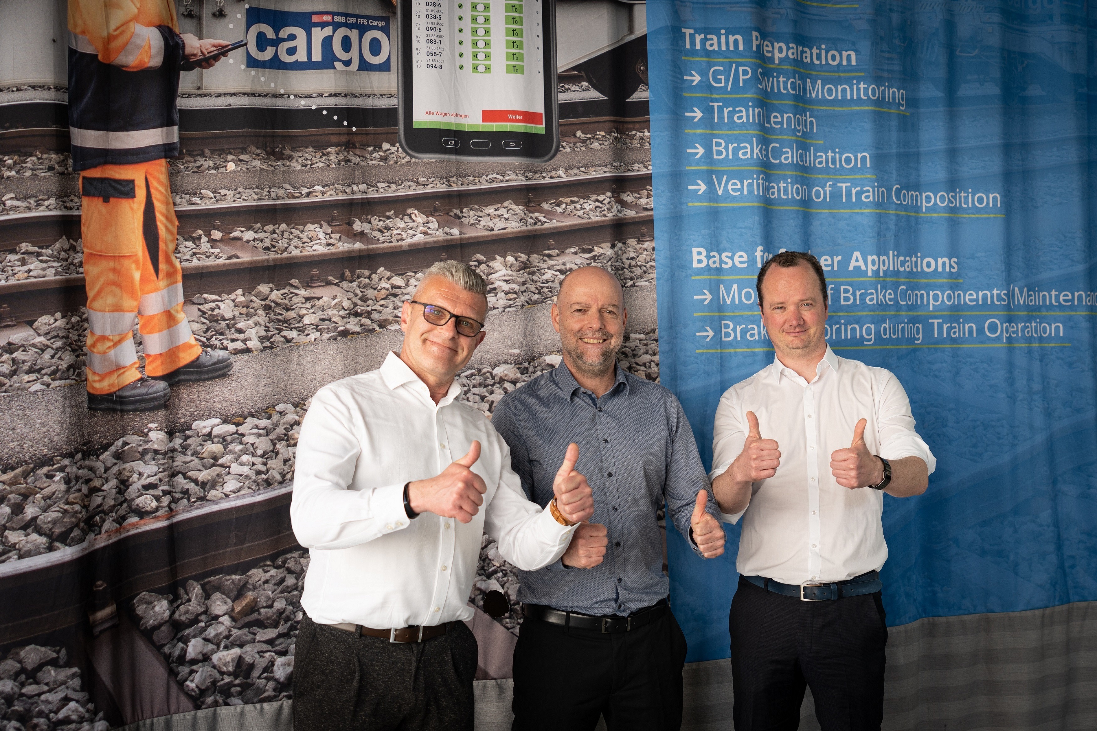 Bild Links: WaggonTracker von PJM im Klimakammertest © SBBCargo Bild Mitte: Thomas Sautter (CMO Voith), Günter Petschnig (CEO von PJM) und Matheus Habets (Vice President Product Management Digitalization Mobility bei Voith) freuen sich über die erweiterte Kooperation der beiden Unternehmen. Bild Rechts: Vertriebskooperation der beiden Innovationstreiber PJM und Voith: Das digitale Gesamtsystem WaggonTracker ist ab sofort Bestandteil des Produktportfolios von Voith. © Manuel Hanschitz