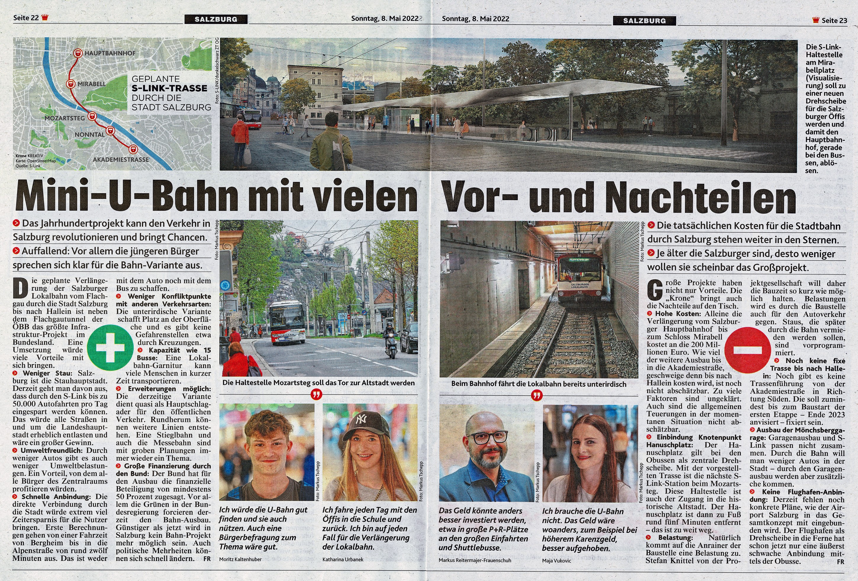 Krone-Artikel 08.Mai 2022 "Mini-U-Bahn mit vielen Vor- und Nachteilen"