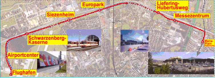 S-Link Streckenabschnitt: Hauptbahnhof - Mirabell - Mozartsteg - Nonntal - Akademiestraße Bereits vor 30 Jahren wurde von der damaligen "Aktionsgemeinschaft Rote Elektrische", heute Verein "Die Rote Elektrische", mit mehreren tausend Pickerln die Lokalbahnverlängerung gefordert. Siegerprojekt der Architekten dunkelschwarz ZT OG wurde von hochkarätig besetzter Jury einstimmig bestgereiht.