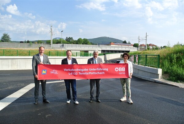 Mit der Fertigstellung der Bahnunterführung nach zwei Jahren Bauzeit gehört die Eisenbahnkreuzung an der Putzmannsdorfer Straße bei der Haltestelle Pottschach der Vergangenheit an. Dadurch wird das Risiko eines Unfalls zwischen Bahn und Straßenverkehrsteilnehmer:innen gebannt und zusätzlich zu diesem großen Sicherheitsgewinn erleichtert die neue Unterführung auch den Verkehrsfluss für die Autofahrer:innen. Die Investitionssumme für die Unterführung, die heute offiziell für den Verkehr freigegeben wurde, beläuft sich auf rund 12 Millionen Euro.
