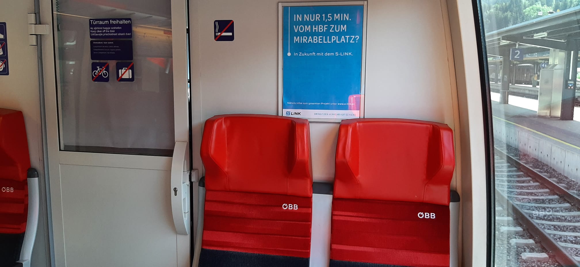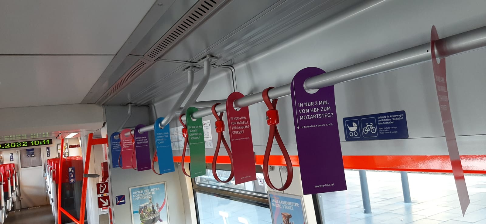 Auch die allgemeine Öffentlichkeitsarbeit ist mittlerweile voll angelaufen. So sind nun in allen 20 "Talent" Nahverkehrsgarnituren der ÖBB in Salzburg Plakate vom S-LINK aufgehängt.