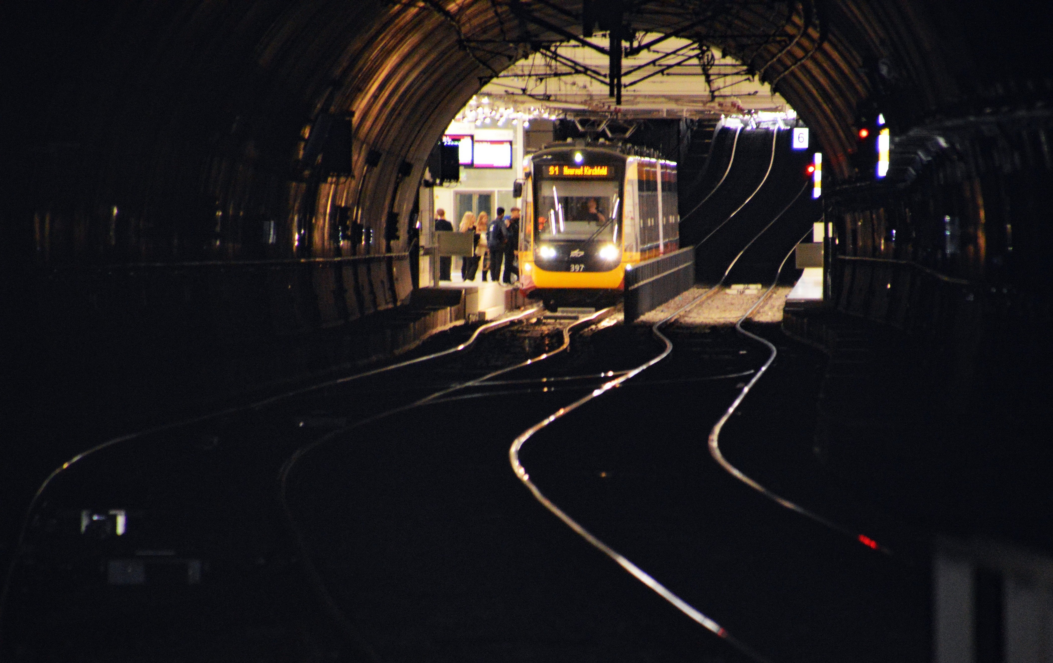 Das "Karlsruher Modell" - Innenstadttunnel mit Durchblick zwischen den Stationen Marktplatz-Pyramide und Ettlinger Tor.