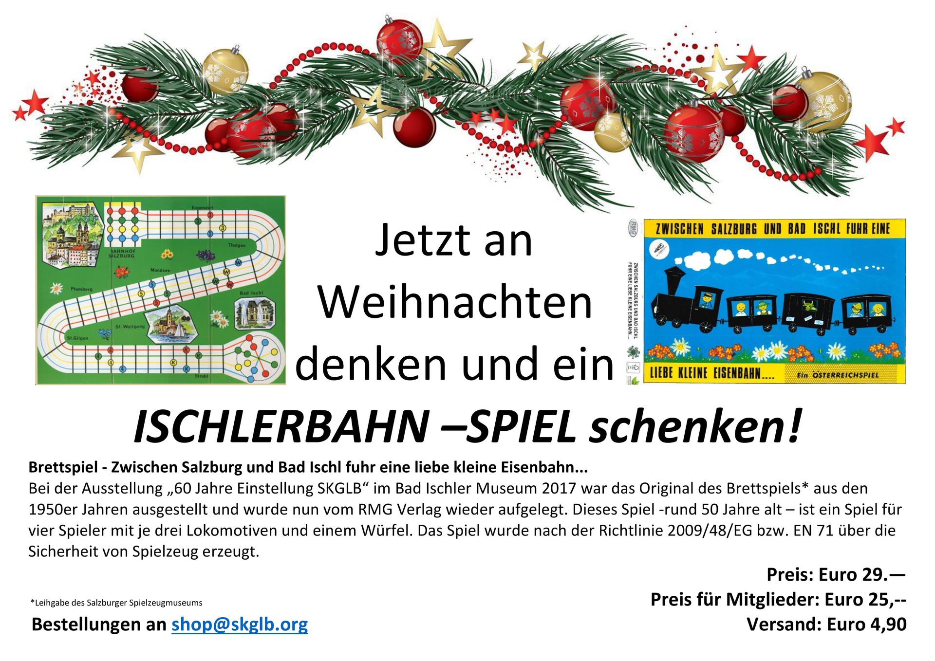Jetzt an Weihnachten denken und ein ISCHLERBAHN –SPIEL schenken!