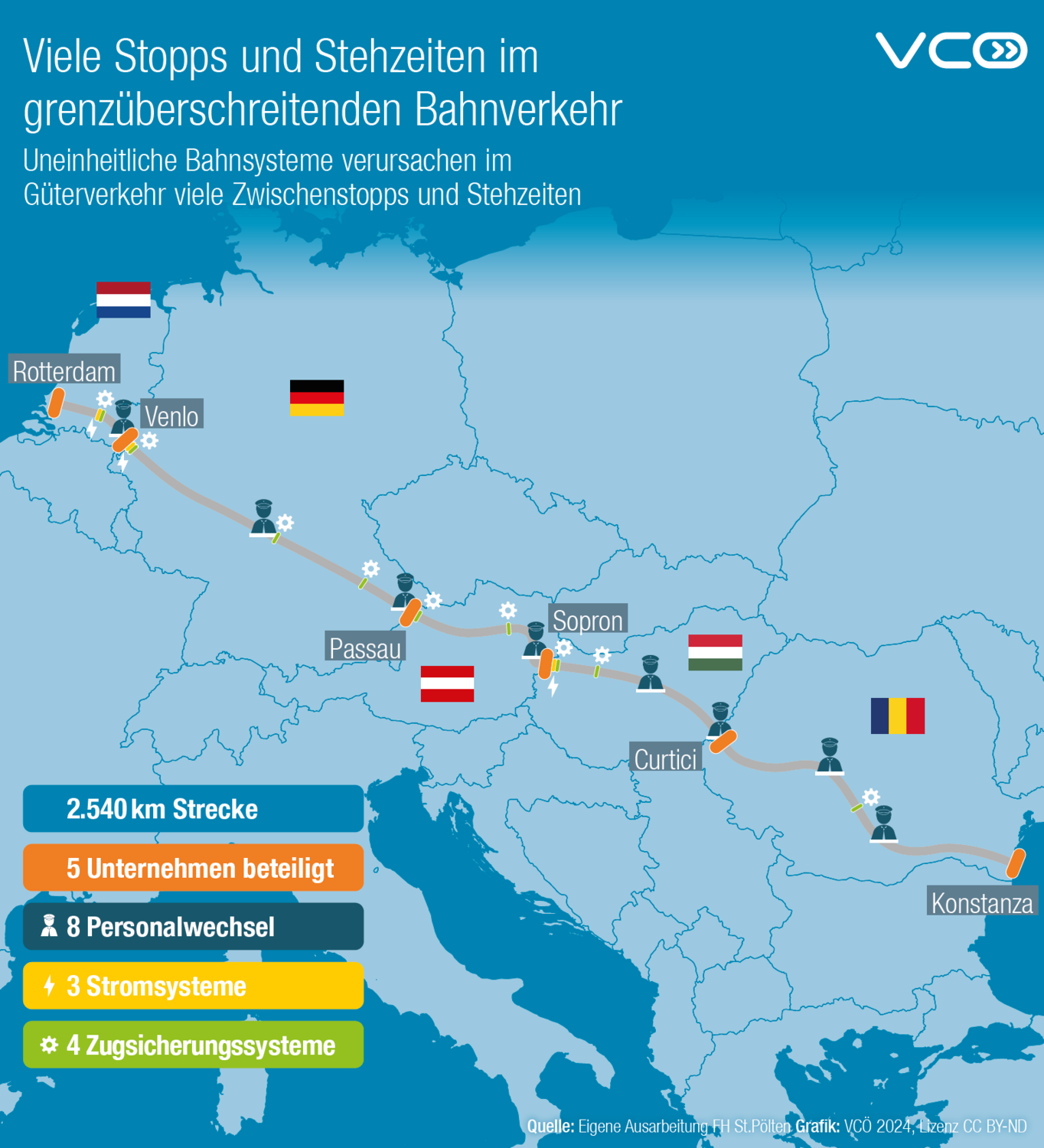 Die Hälfte des Schienengüterverkehrs in der EU sind grenzüberschreitende Transporte. Damit stehen viele Güterzüge in ganz Europa vor den Problemen des sehr uneinheitlichen Bahnsystems. Lange Stehzeiten an den Grenzen und aufwändige operative Maßnahmen sind die Folge. Dazu zählen wagentechnische Untersuchungen, veränderte Bremsstellungen, das Durchführen von Bremsproben und das Ausstellen von neuen Dokumenten für die Zugfahrt. Außerdem ist der internationale Einsatz von Lokführerinnen und Lokführern nicht so leicht möglich, da diese über ein B1- Sprachniveau der Landessprache verfügen müssen, um im jeweiligen Land fahrberechtigt zu sein.