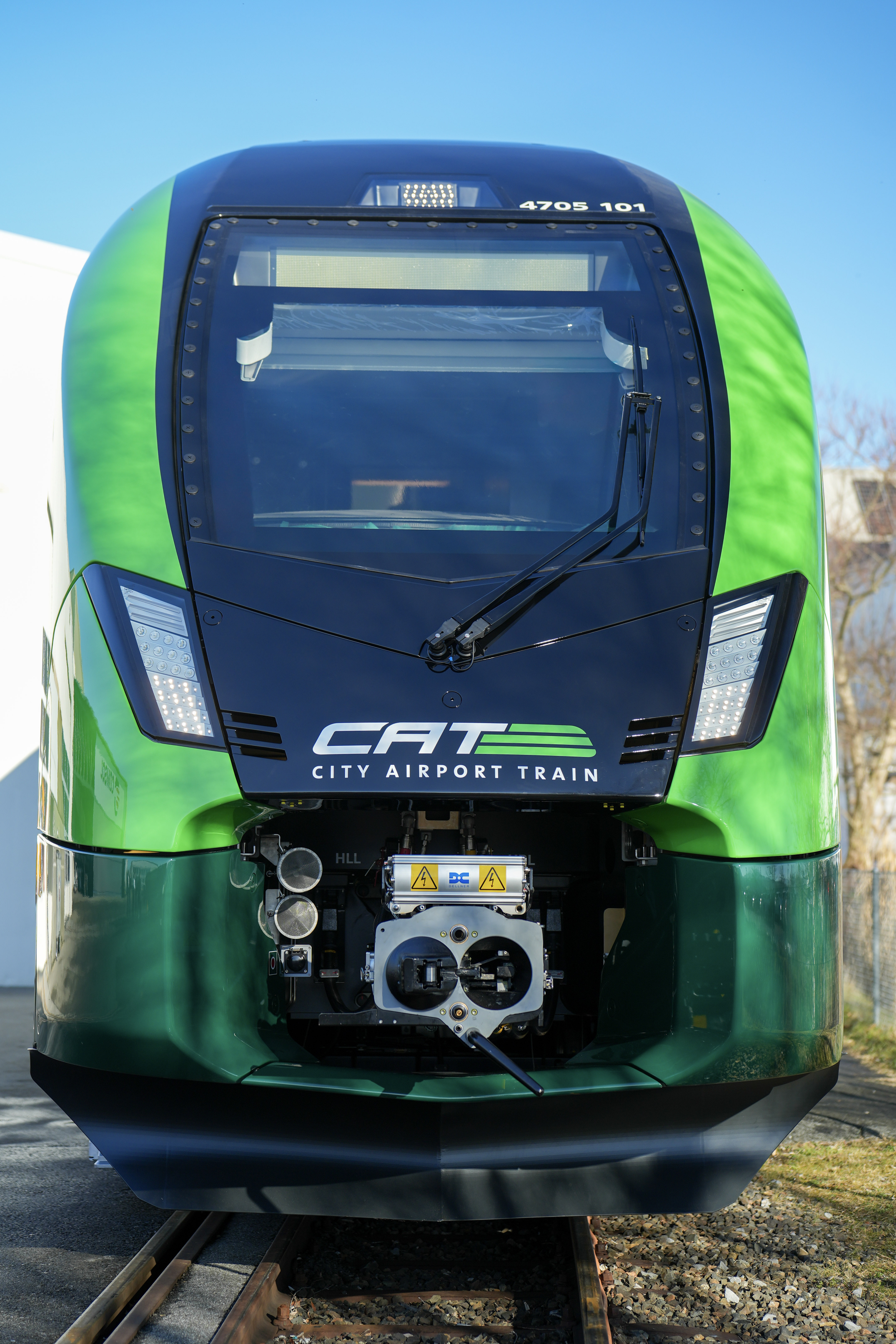 Das bekannte, leuchtende CAT-Grün prägt die primäre Farbgebung der großzügig liniengeführten Signatur am Zug und sorgt für eindeutige Differenzierung sowie starke Markenpräsenz bereits aus großer Distanz. Ergänzt wird diese dynamische Präsenz durch das neu eingeführte Smaragdgrün, das dem CAT eine elegante, kultivierte Note verleiht. Anthrazit zwischen den beiden Grüntönen schafft visuelle Klarheit und fungiert als kommunikativer Träger des CAT-Logos in der modernen Komposition – ein Ausdruck schneller, verlässlicher Hochleistungsmobilität zwischen der Stadt und Flughafen.