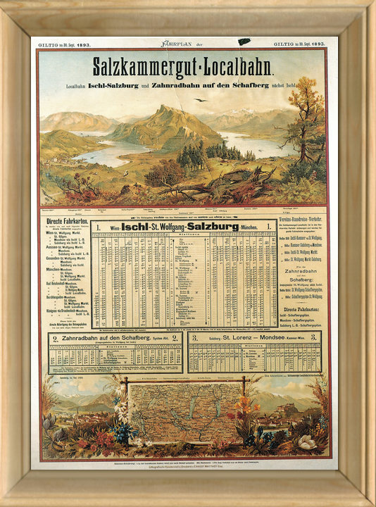 Fahrplan der „Salzkammergut - Localbahn„ Wien-Ischl-St.Wolfgang-Salzburg-München gültig bis 30. Sept.1893